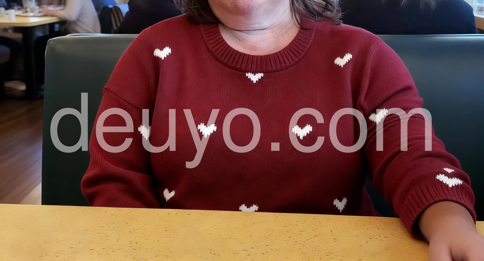 For the price, the quality of this knit is fantastic. It feels like a much more expensive boutique find. The white hearts are actually woven right into the fabric, not just cheaply printed on. Very happy with this purchase!