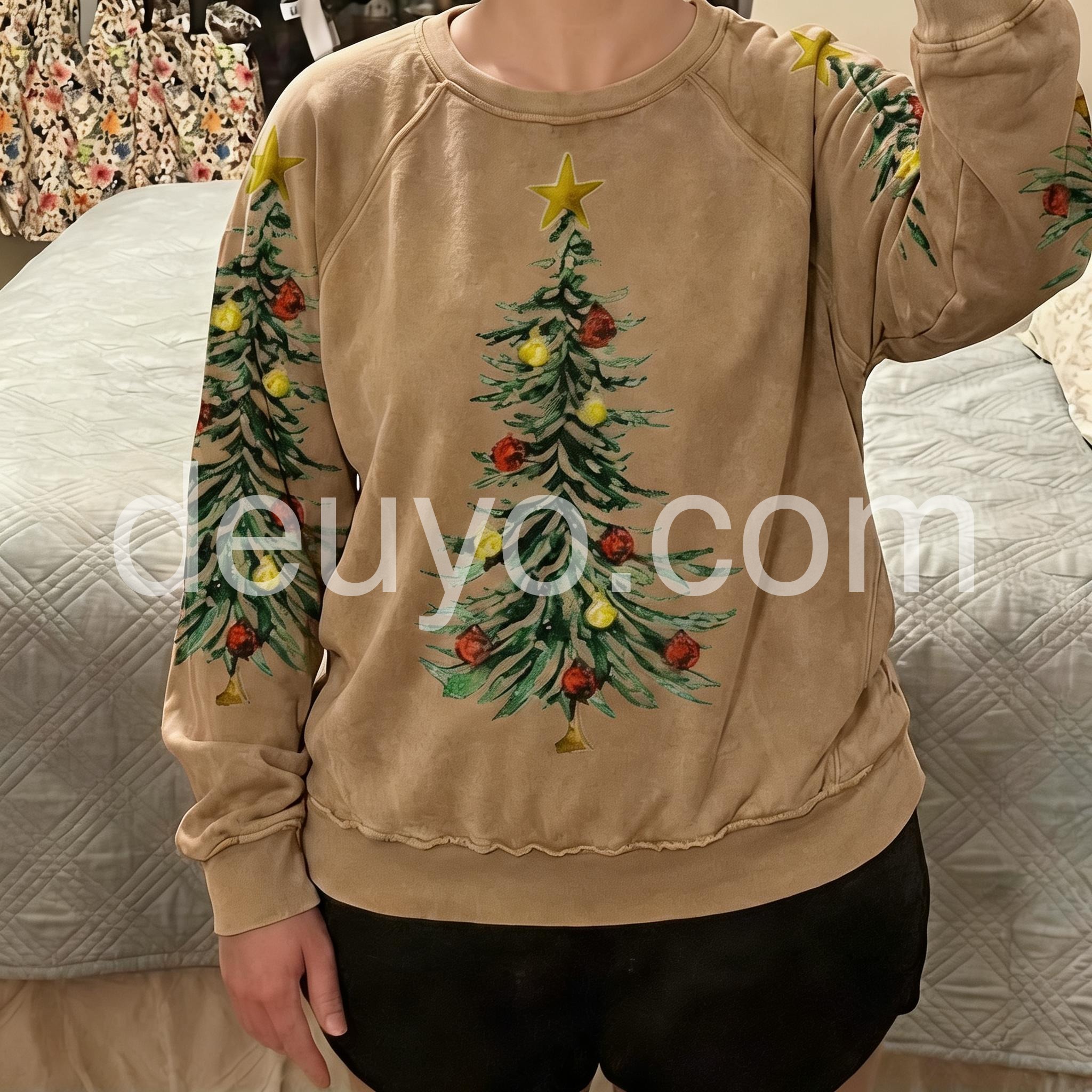 I ordered this sweatshirt because I loved the print! It‘s perfect for christmas. I ordered a medium and would say it fits true to size. The material is soft but I was hoping it would be a bit softer. I’m still giving it a 5 stars because of the pretty color and the fit. It is nice and warm for those colder days and washes up well.