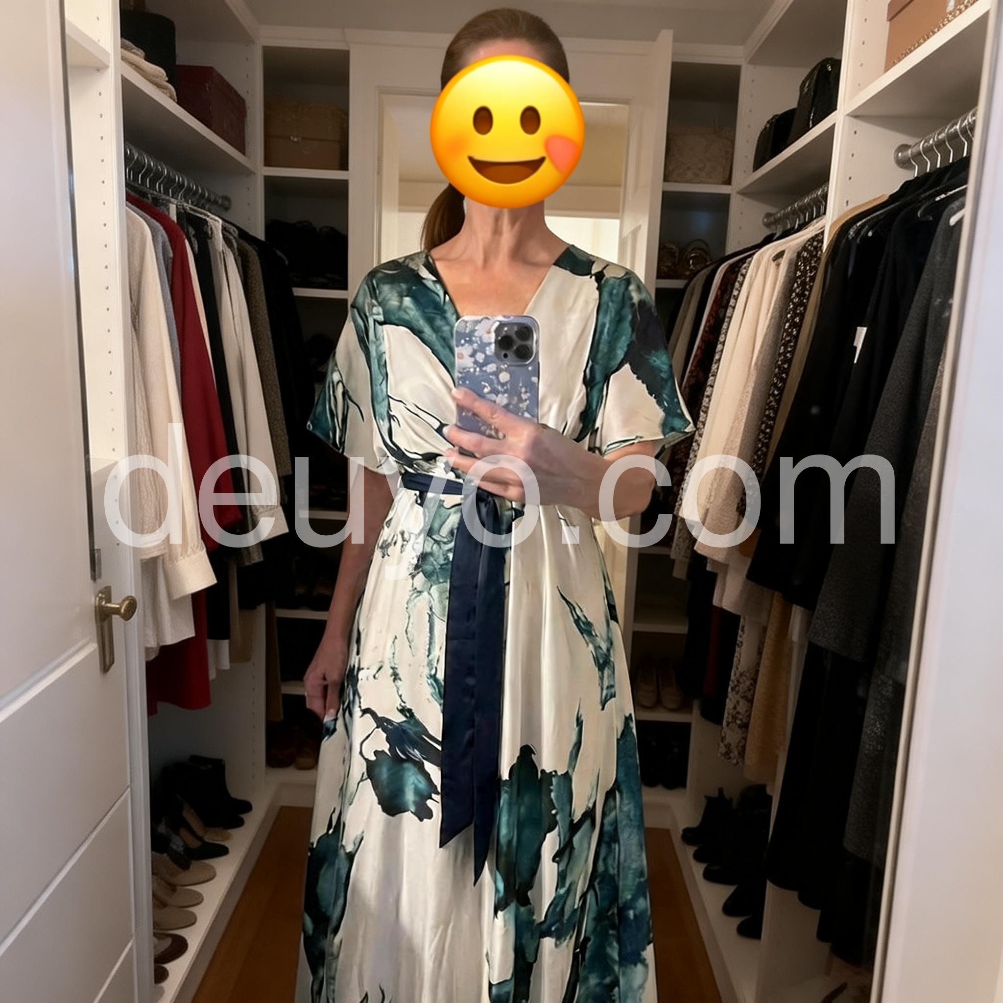 Absolutely stunning print. The teal and white watercolor design looks even better in person. It feels like a high-end designer piece but at a fraction of the cost. Perfect for a summer wedding guest outfit.