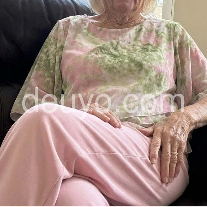Beautiful outfit! The soft pink color of the pants matches the top flawlessly. It looks much more expensive than it is. Highly recommend for any mature woman looking for a classy event outfit.
