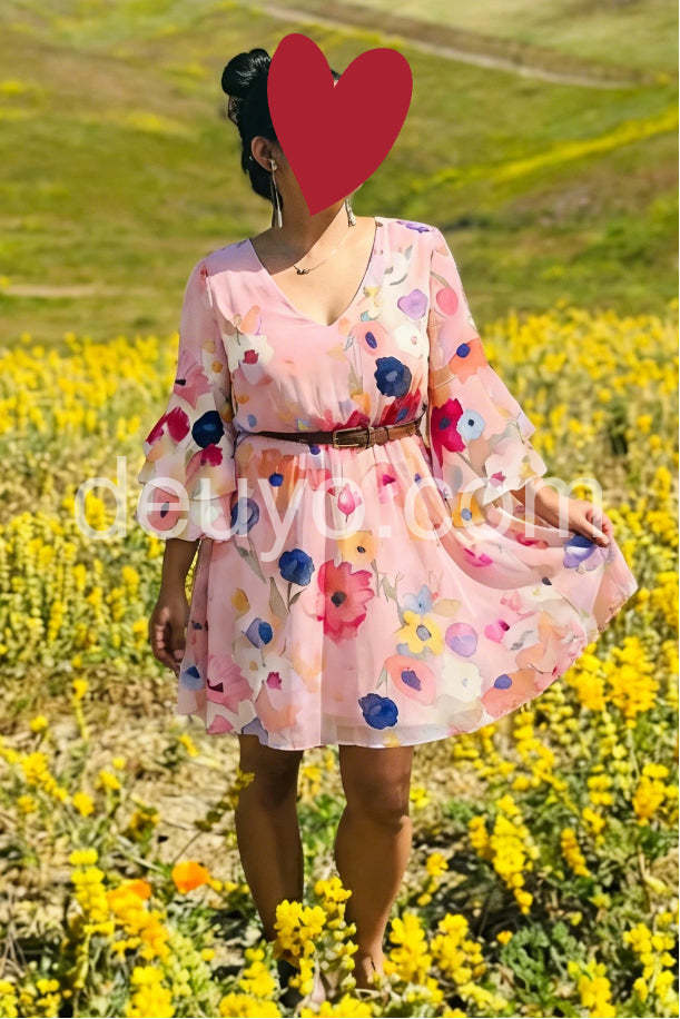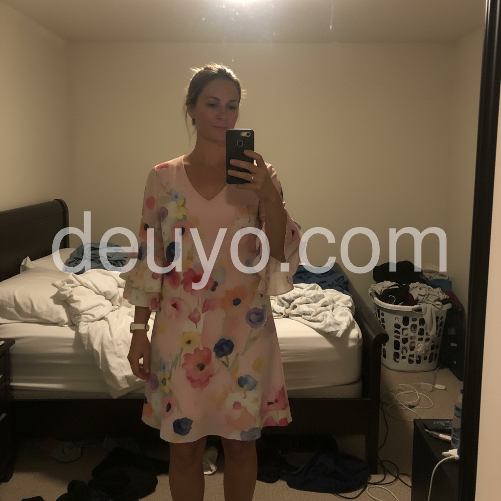 Absolutely love this dress! The watercolor floral pattern is so beautiful in person. The fit is incredibly flattering and forgiving without looking like a tent. Perfect for my upcoming spring vacation.