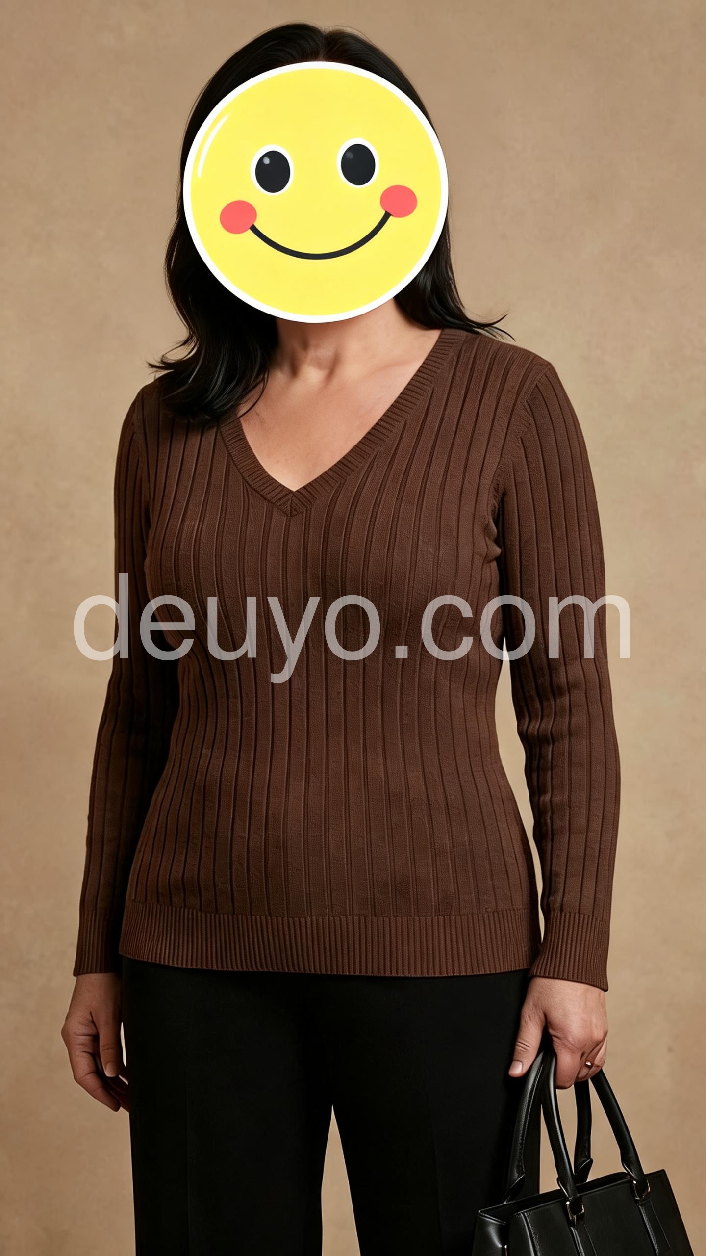 This is such a nice sweater. The ribbed texture is high quality and the fit is very flattering. It’s comfortable for everyday wear and perfect for cooler weather. The color is rich and looks great with everything—just like in the listing pictures. I’m very happy with my purchase.