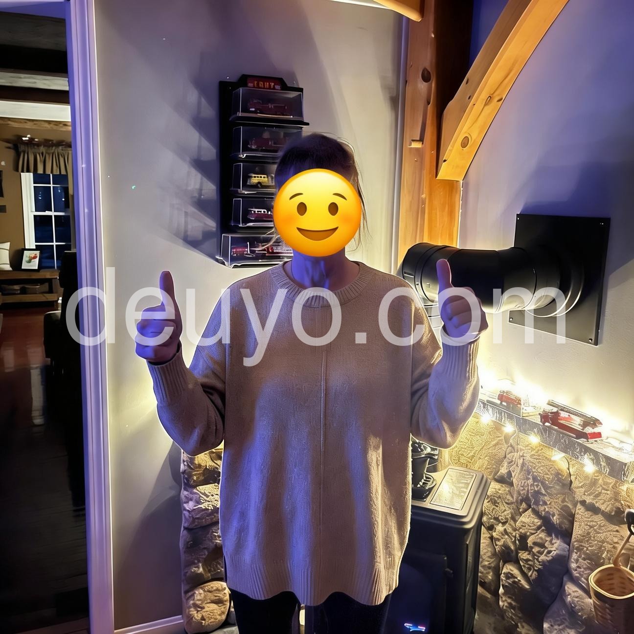 Nice longish sweater! Soft and TTS! The length and width are forgiving and not form fitting. The sweater falls to the hip bone.