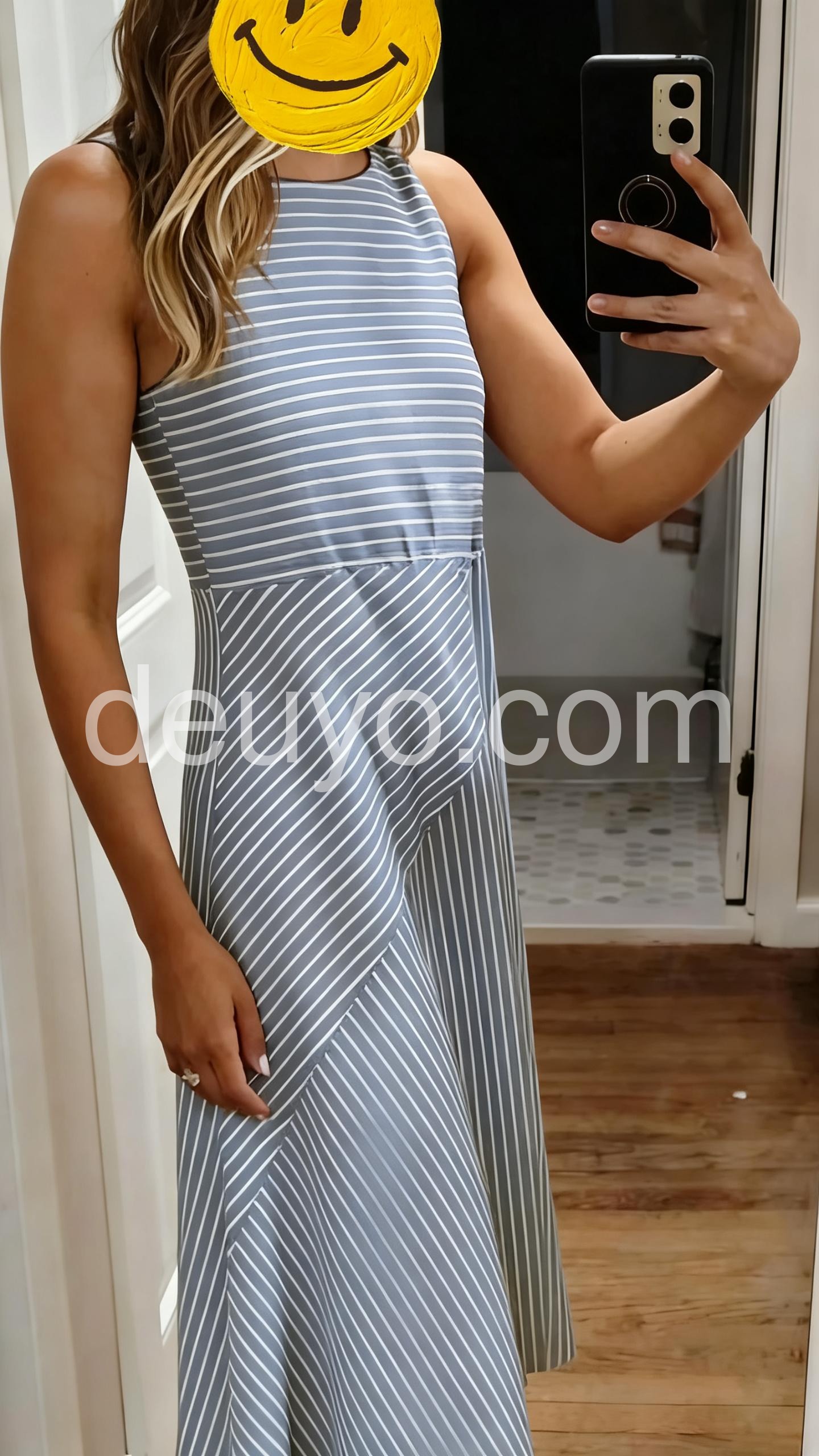 Absolutely gorgeous dress. The asymmetrical stripe design makes it unique compared to standard striped midi dresses. Very happy with this purchase.