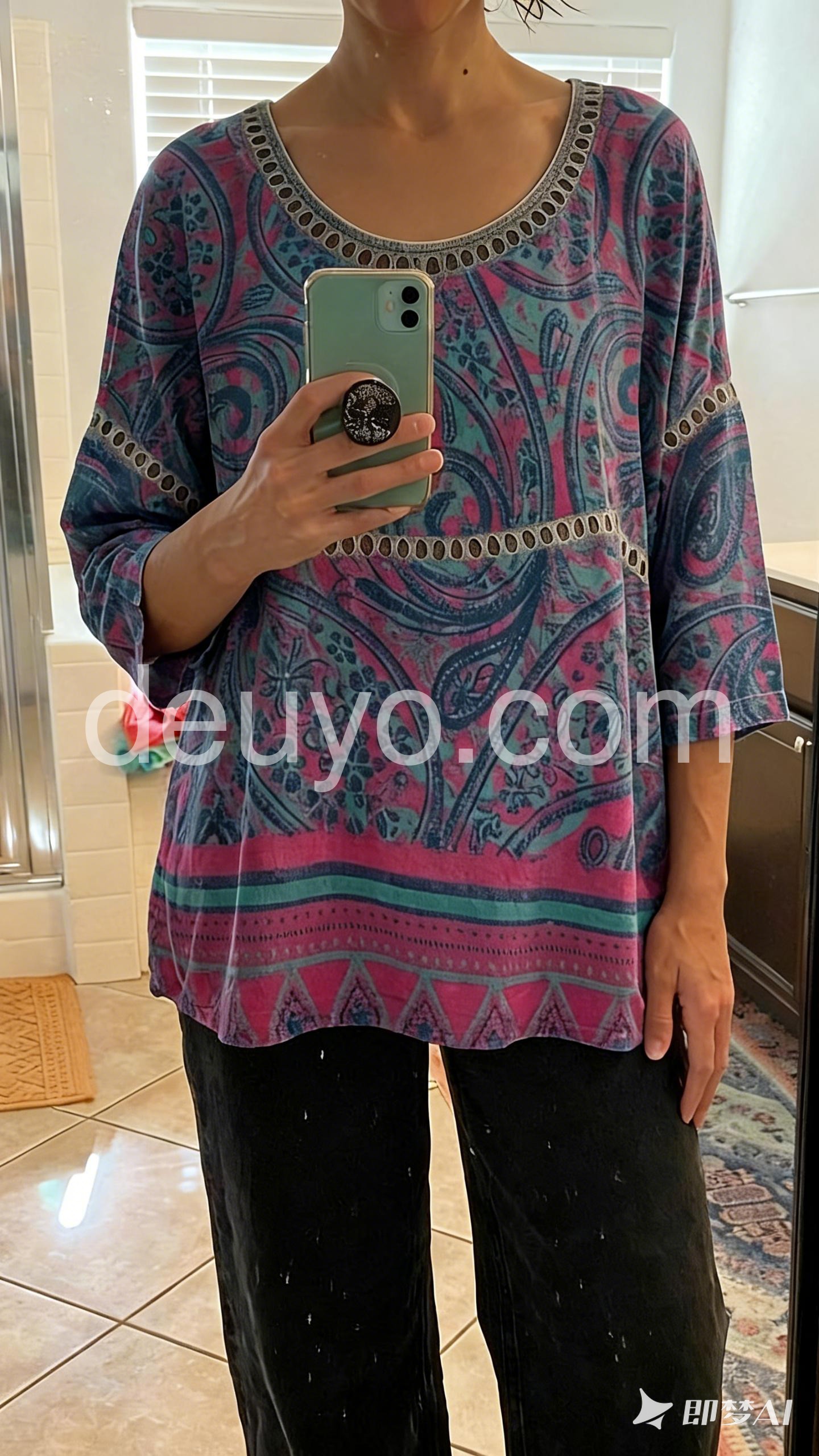 I am in love with the bohemian style of this blouse. It is incredibly soft and drapes beautifully. I will definitely be ordering this in more patterns if they have them!