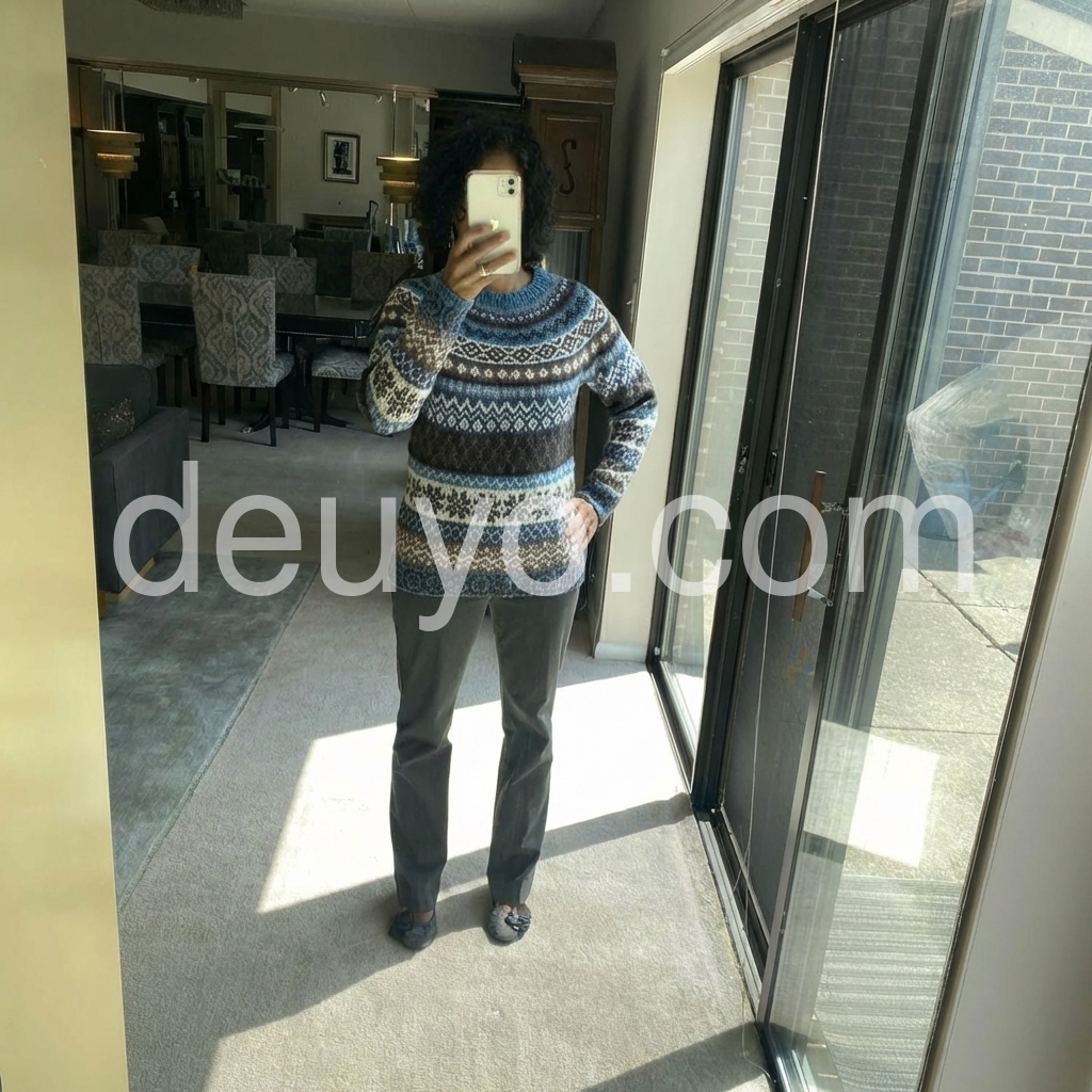Nice sweater with a classic Scandinavian look. The material feels sturdy and comfortable, and the design doesn’t look cheap or overly busy. I’ve worn it to work on colder days and got compliments immediately. It’s also easy to style—pairs well with almost anything casual.