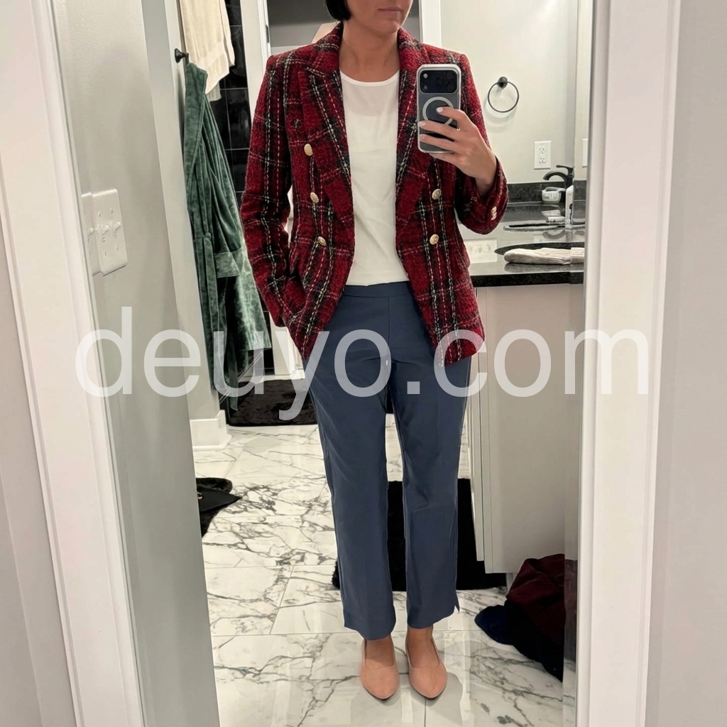 I bought this for a seasonal wardrobe refresh, and it turned out to be a great choice. The burgundy color is stunning, and the plaid design adds a cozy, artsy feel. It’s warm, flattering, and effortlessly stylish.