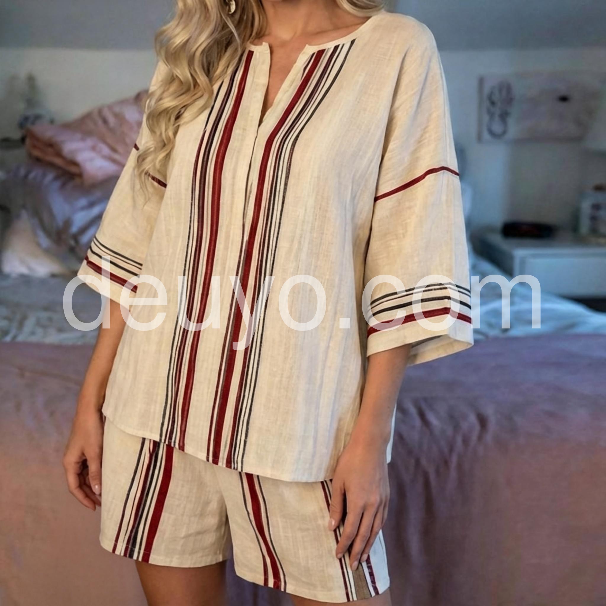 I bought this set for my trip to Greece and it was perfect! The material is so lightweight and breathable, which was exactly what I needed for the hot weather. It looks chic but feels like pajamas. Highly recommend!