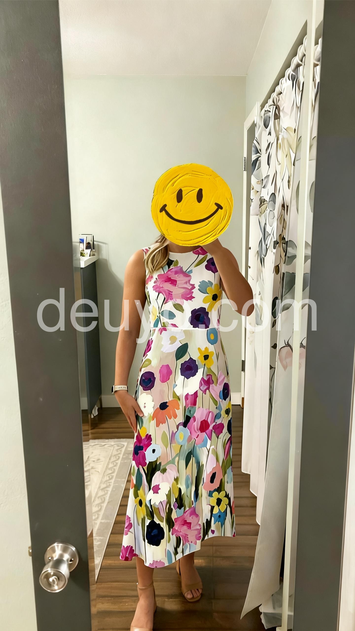 I was looking for a modest but cute dress for a daytime event and this hit the mark. The sleeveless cut keeps me cool and the vibrant floral print is perfect for spring.